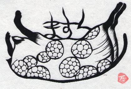 連作「猫」 其の壱 にゃにゃっと猫の八変化(へんげ) 頭にのっかりゃベレー帽 がりがり削るぞ鉛筆削り 背中におぶさりランドセル 自慢の毛並みでガードしマスク 美声で「にゃー」っと電話にゃー 足下ならば草履がぴったり あぁ疲れたな 熱燗ちびり 〆は昆布じめ 召し上がれ (切り絵:竹本万亀/ことばあそび:榎田純子) ページの上部に戻る